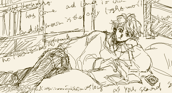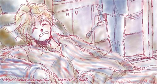■だらだら絵 「壊れたタブレットの台と壊れたタブペンを使って描く(笑) 案外描けるものらしい 2005年12月06日(火)GW妄想語りより 後ろの消しゴム使って描いた奴(笑) きいているのは、すたんどばいみー。 |