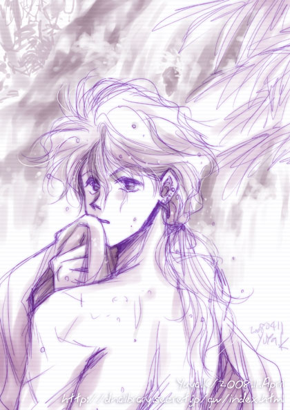 光流落書き同じく、saiの例書きの落書き。 「光流に色気を振りまかせるような絵を描くのが好き。 このところのは ペイントツールSaiでの落書き。 三月に書いたさくらの絵のときは ソフトに慣れようと思って書いていたんですけど 全然うまくいかなくて 普段は殆どタブレットで下書きとかしないんですが とりあえず適当に書いて適当に色をぬろう。 という感じで。 なんとか書き上げたんですけど とても書きにくくて その後も何枚か書きながら何か書きにくくて 変だなぁと思っていたら 友人との会話で、どうやらタブレットがうまく機能していないいうことが判明。 ドライバを入れなおしたら 超快適になったので、適当に落書き。 どうしても漫画を描くと 光流の出現率が下がるので イラストは殆ど全て光流の心意気で。」 落書きの場合 あたりも取らないし、CGで書いていても反転とか使わないので 概ねいつも同じ構図になってしまうようなきがする。 せめて、書くところ回転させる機能とかを使っていたんだけど やっぱりあまり関係がないような絵。 なんか突然、背中が書きたかった。 ゆや/<080414> |